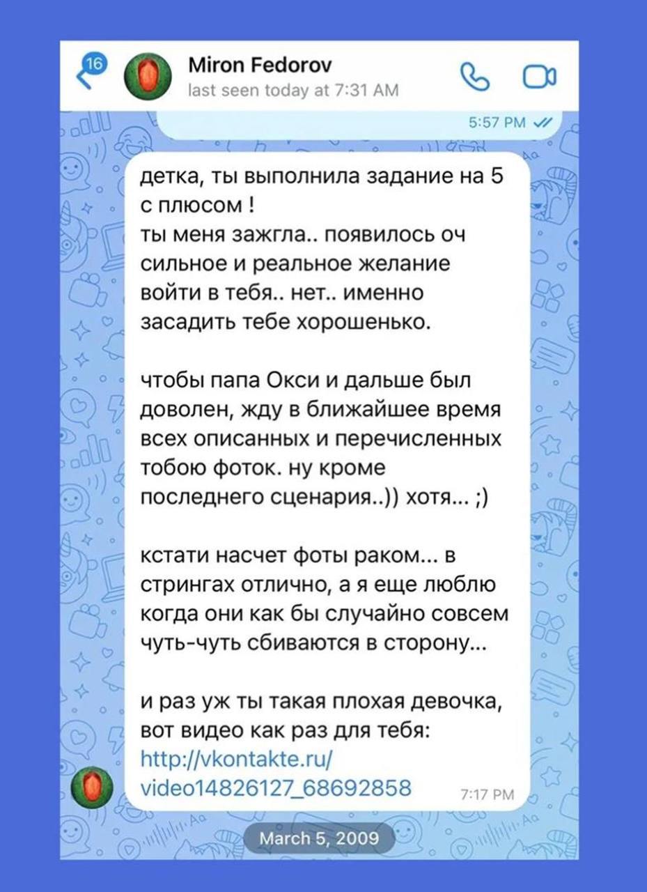 Третья участница предоставила скриншоты переписки, в которой рэпер якобы просил интимные фото у несовершеннолетней фанатки.